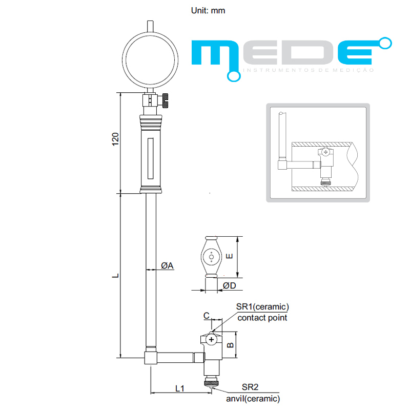 - Incluso relógio comparador, batentes, espaçadores intercambiáveis e estojo